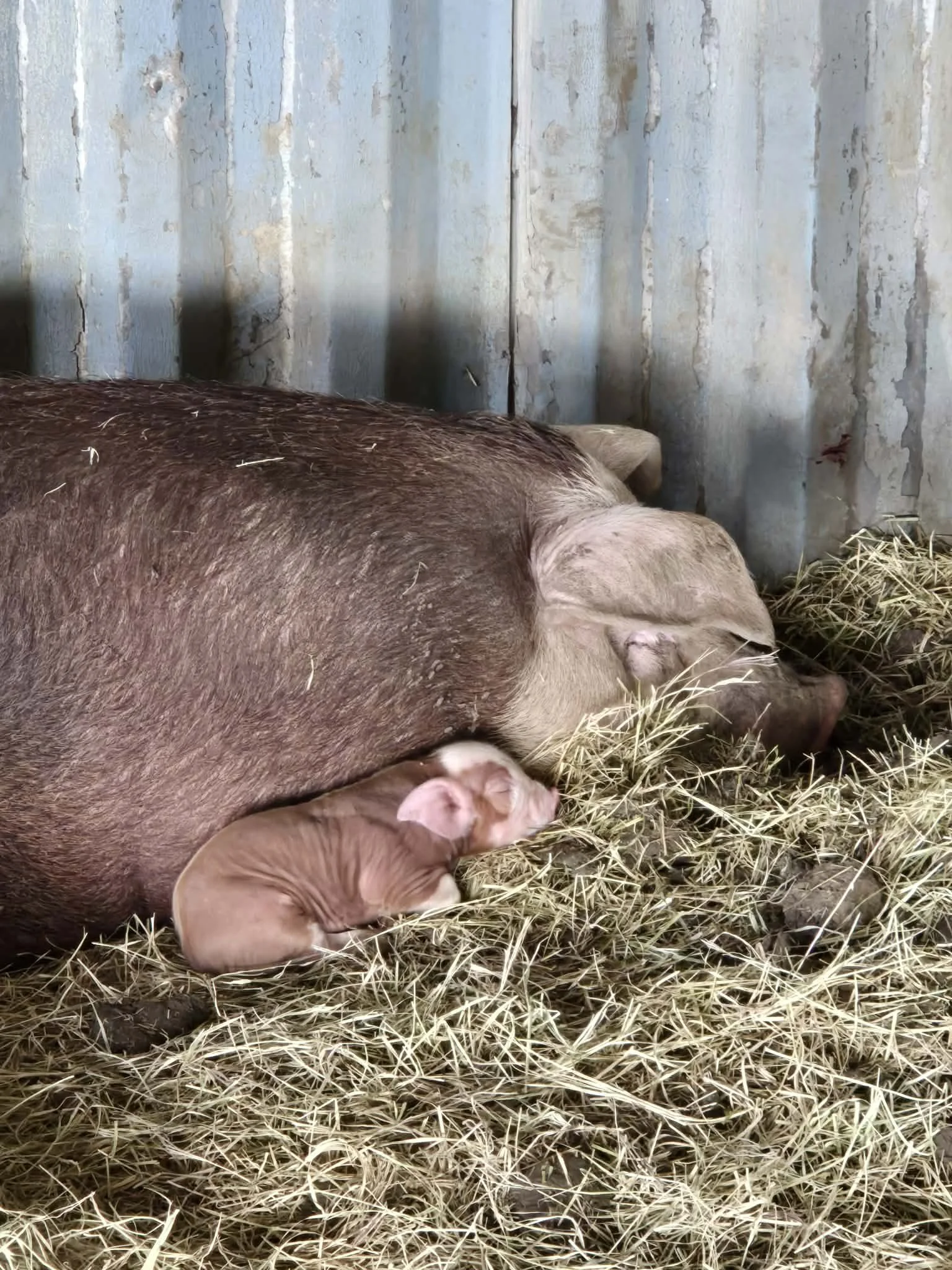 Since we’re all so in love with Daisy Mae and Dijon, and the piglets were very popular, we’ve added a new sow! This is Pico, and we’re so happy to have her here!
